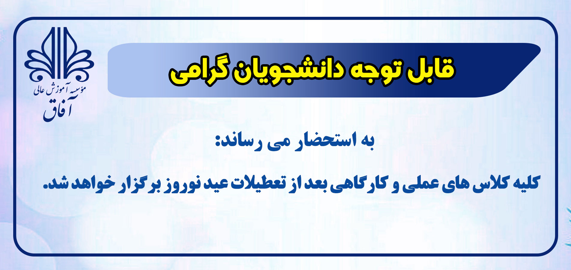 تقویم آموزشی موسسه آموزش عالی آفاق