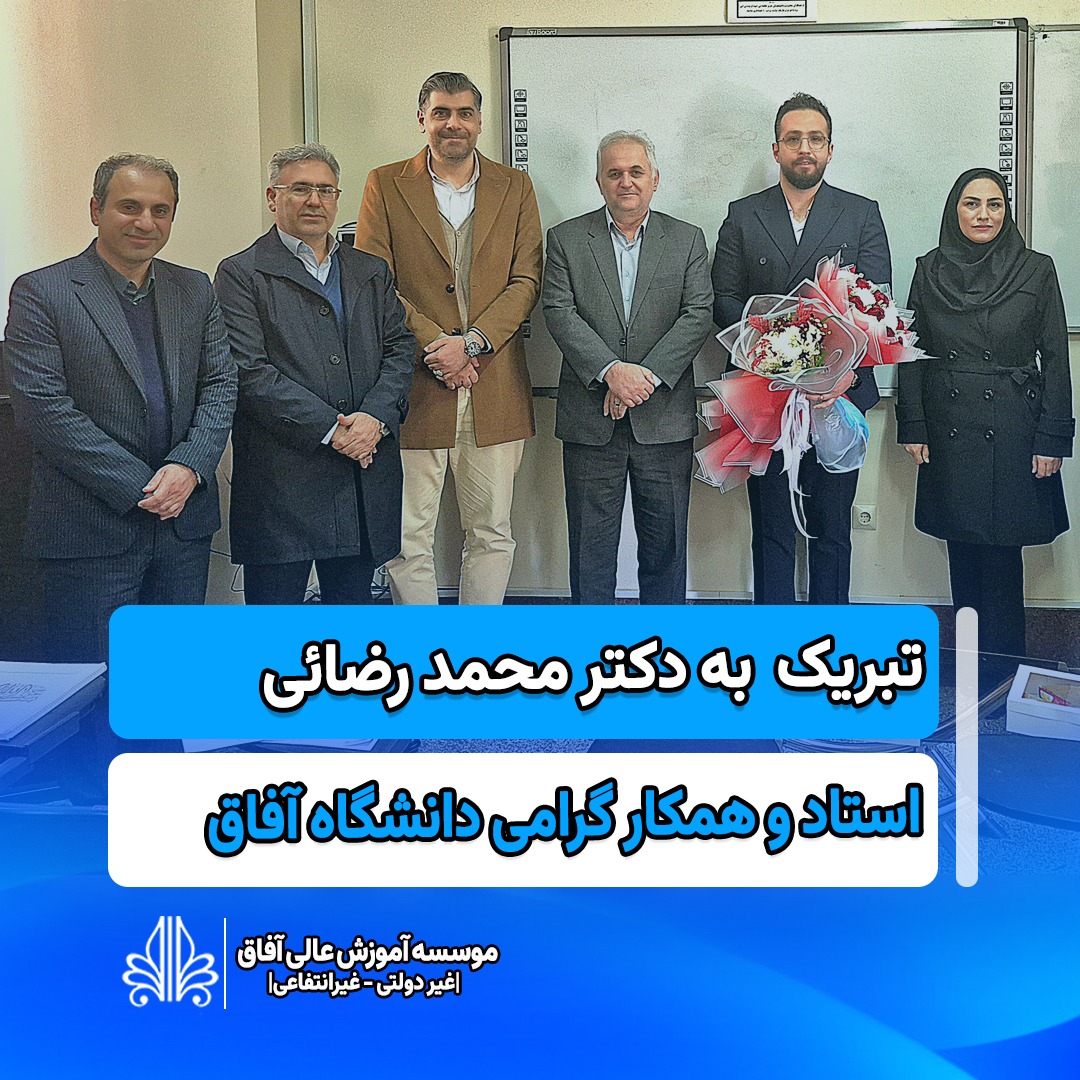 این موفقیت بزرگ را به جناب آقای دکتر محمد رضائی، همکار و مدرس پرتلاش و همچنین خانواده محترم ایشان، اساتید گرانقدر و جامعه علمی دانشگاه آفاق صمیمانه تبریک عرض مینماییم. دفاع موفقیتآمیز رساله دکتری با عنوان “تولید آبمیوه عملگرای غنی...